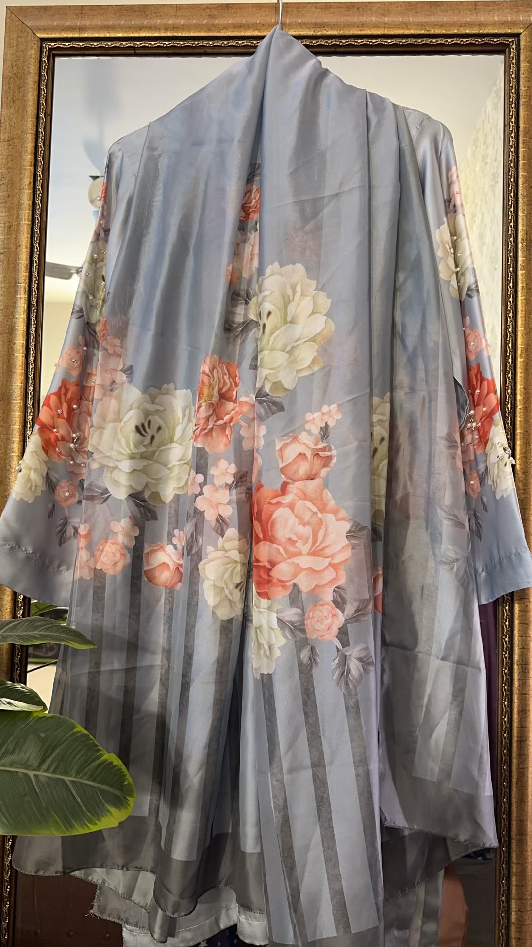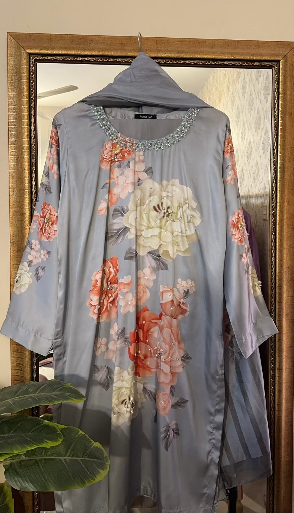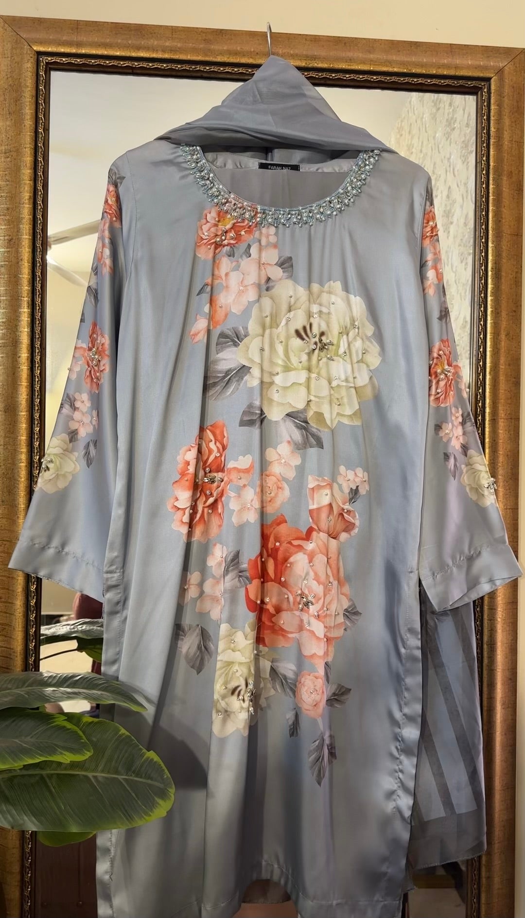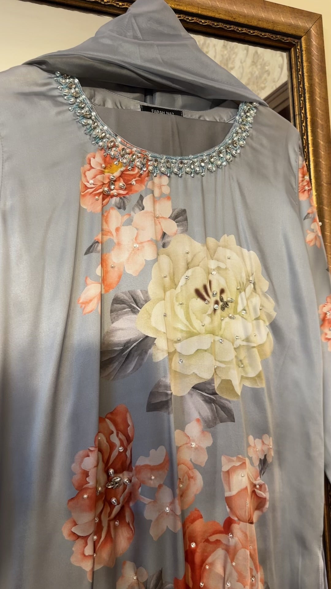 digital printed silk with heavy handwork detailing