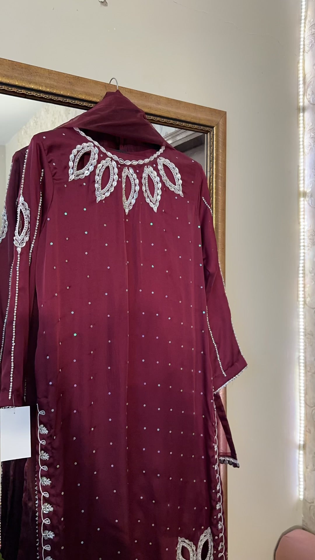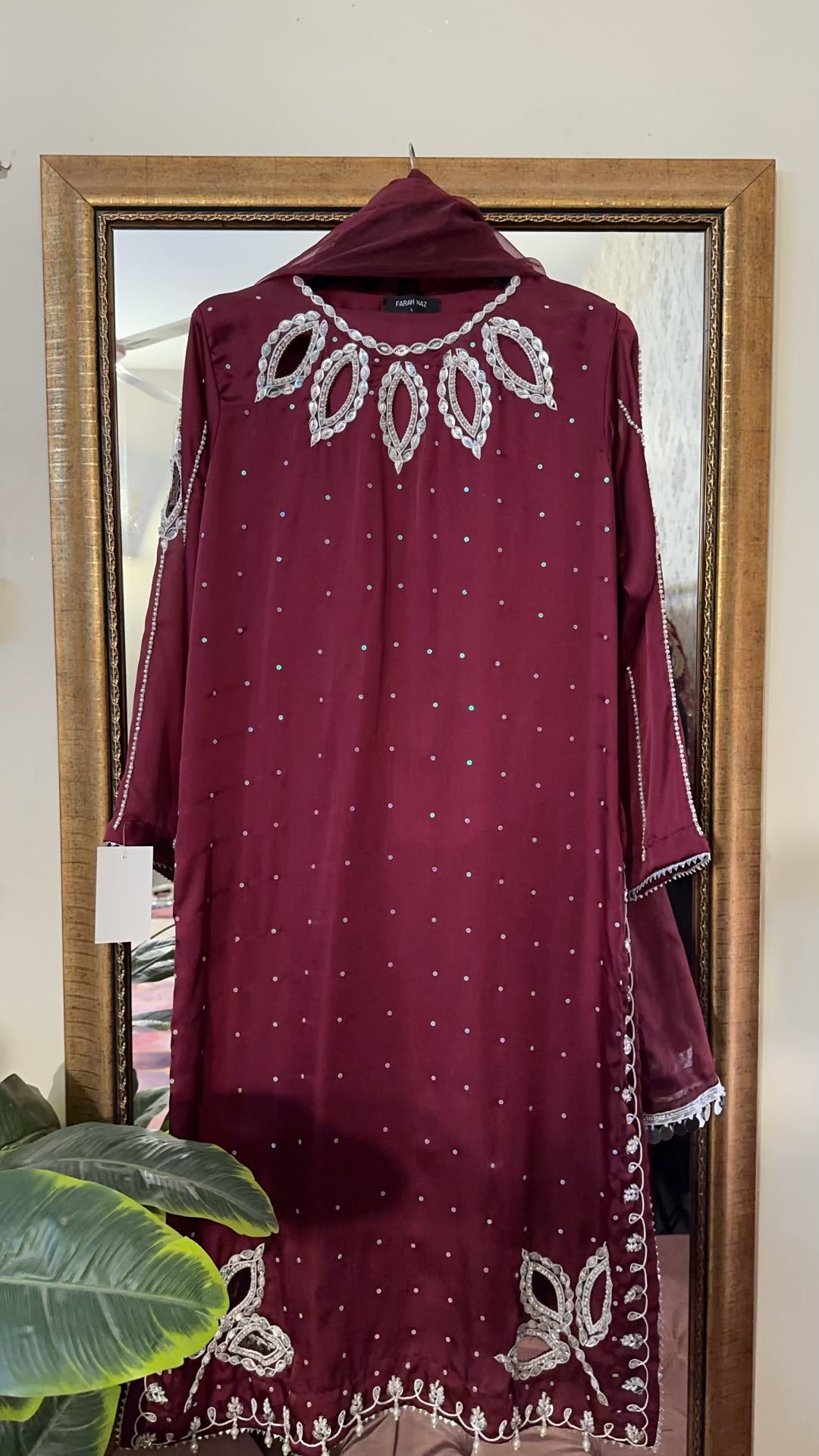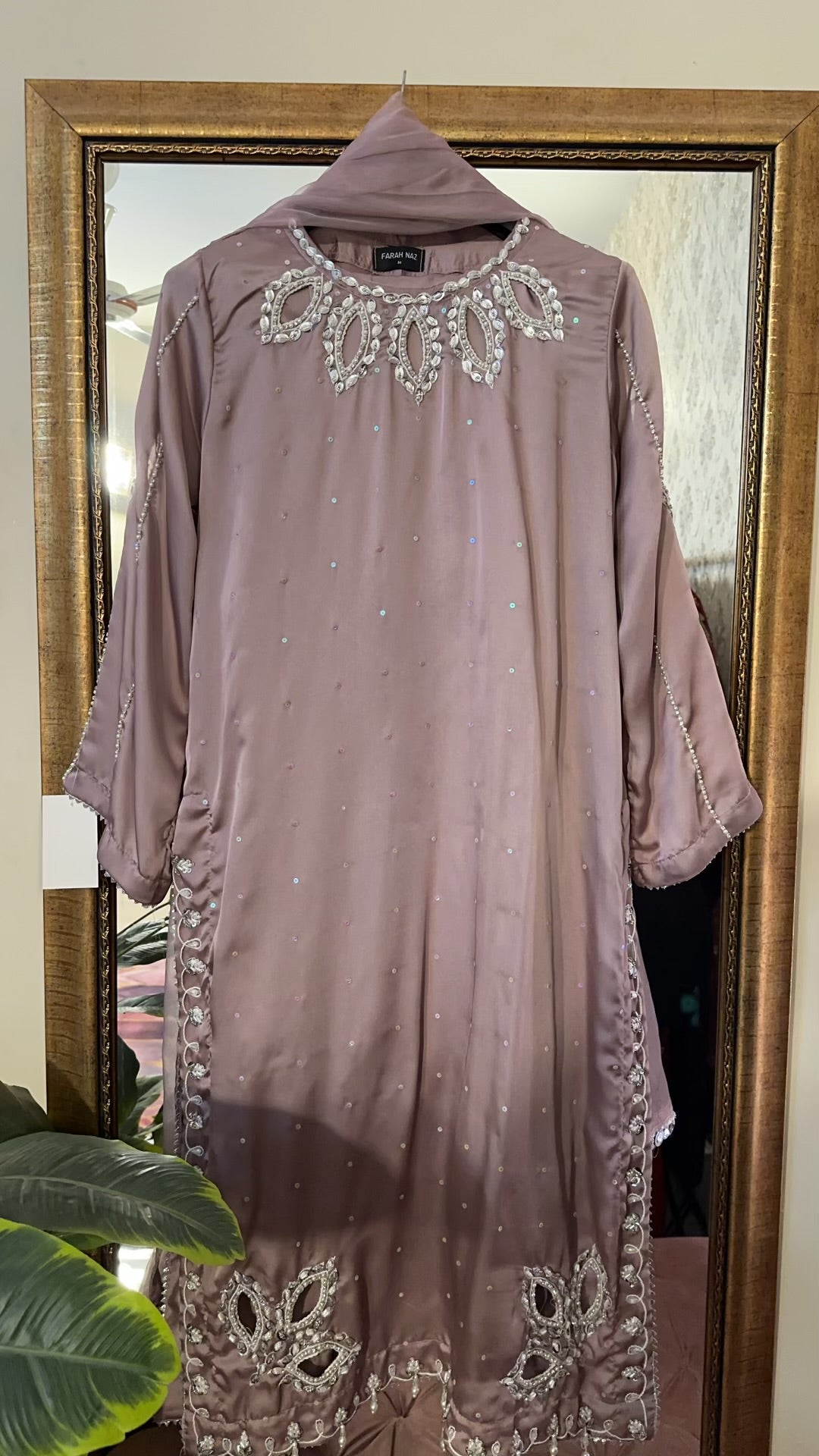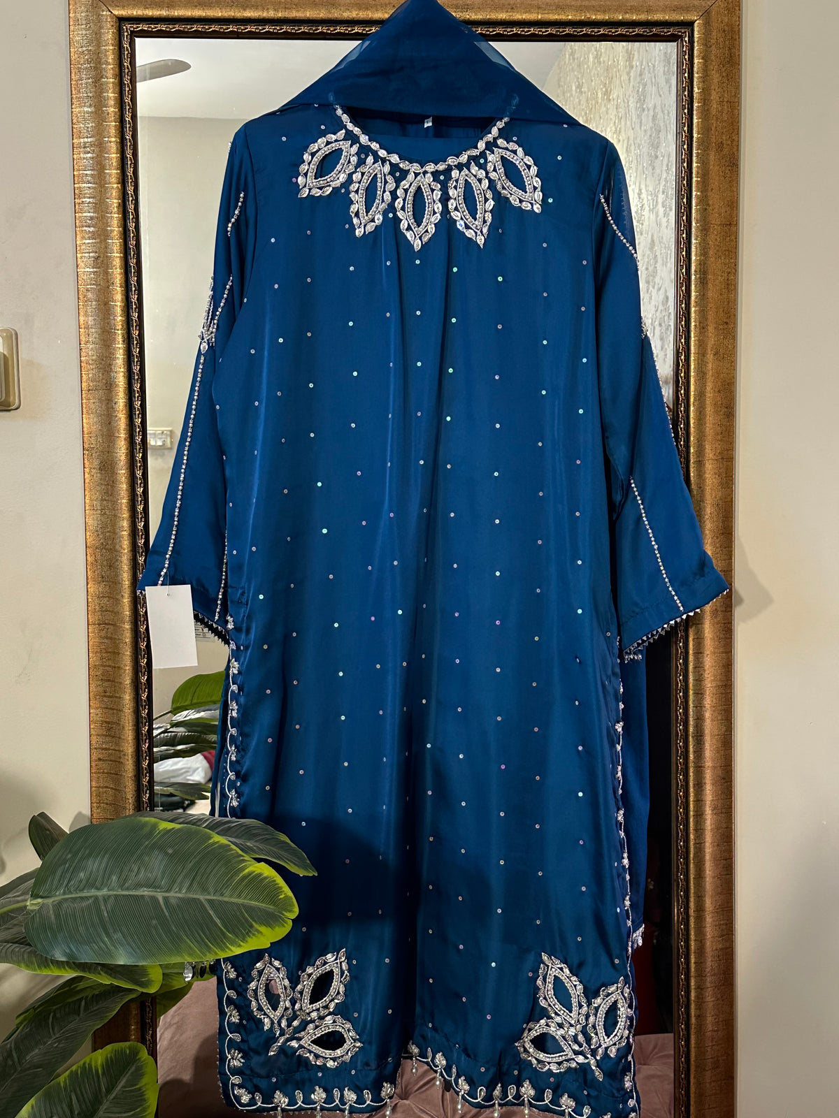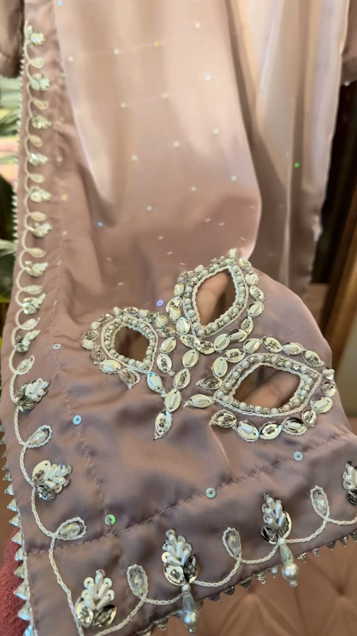 sheesha silk 3 pc fully handwork detailing on neck sleeves and daman same matching pants extremly soft organce cotton net dupptta *s m l* *3pc 6000*
