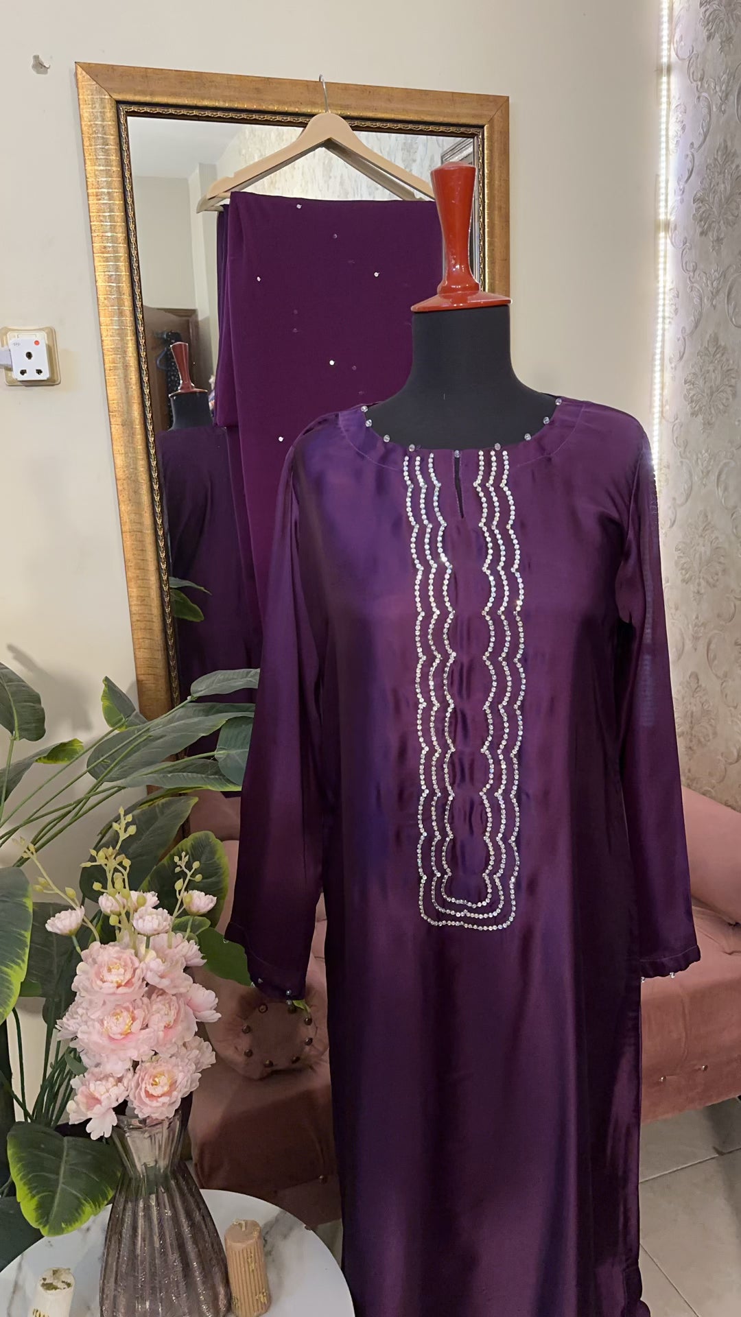 kaftan style shirt with swroski stone work detiling on neck and crystal detailing on sleeves