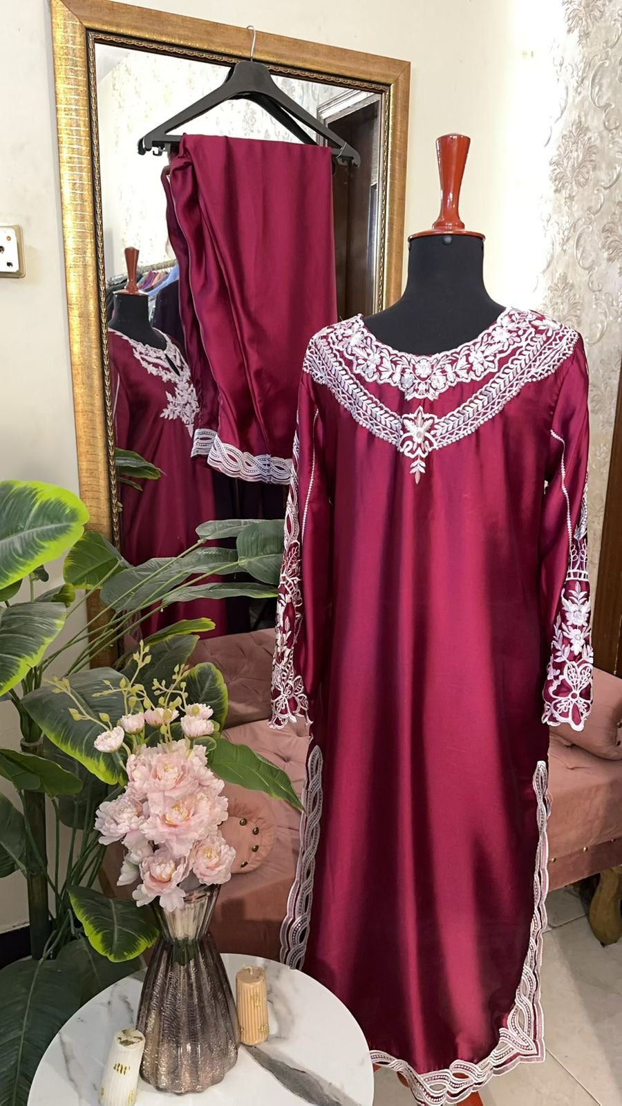 - Embellishments: Neck & back embroidery + cutwork on chalks & daman